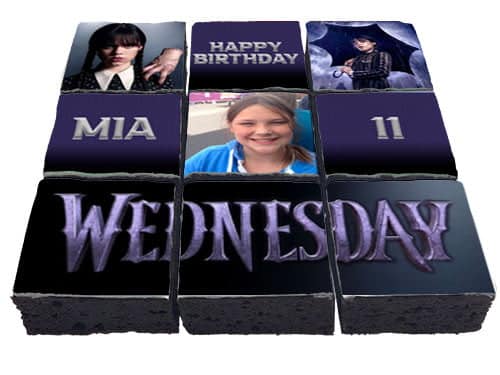 Add your own image with these Wednesday themed brownies for a special gift!